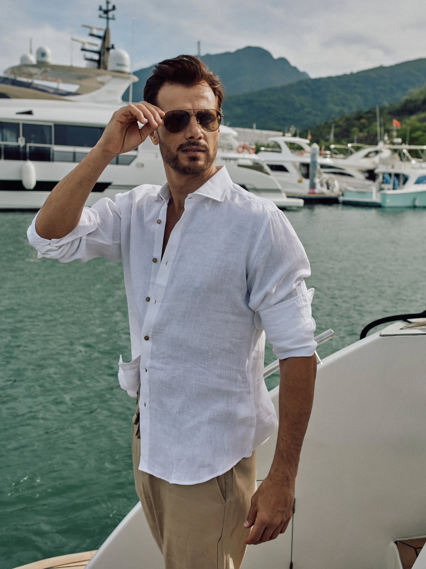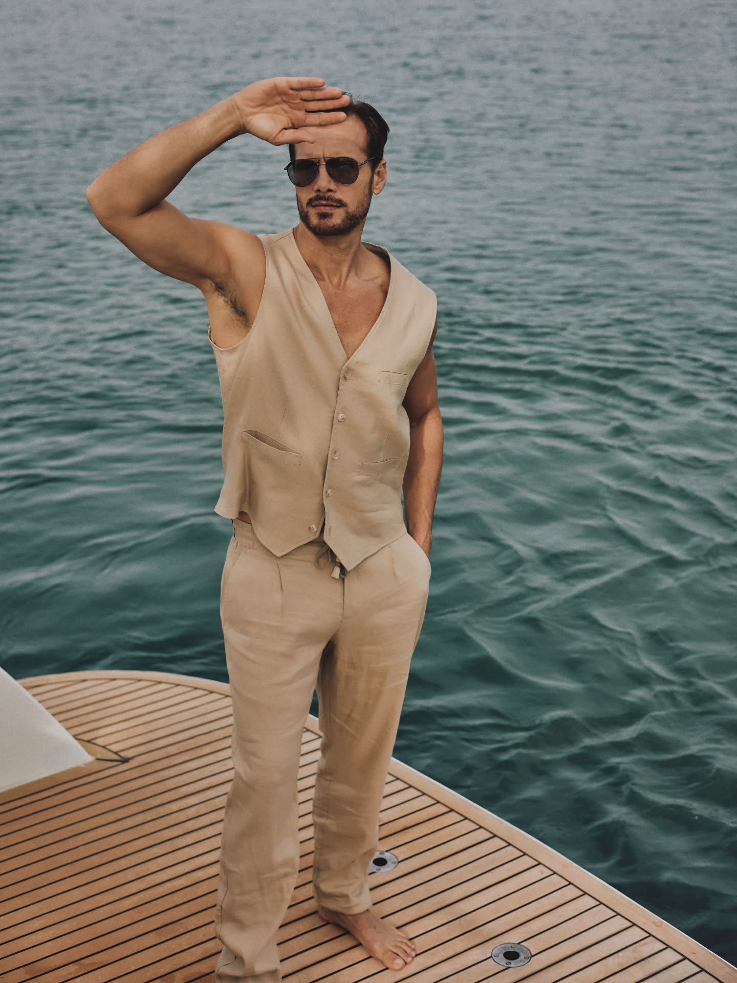 ⛵ Chasing horizons in comfort. Linen always feels right by the sea #Ganiani